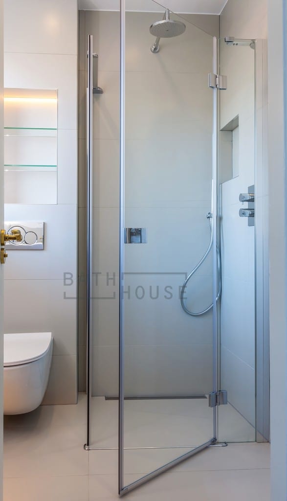 Shower Enclosure: Simpsons Design Semi-Frameless Glass Panels.