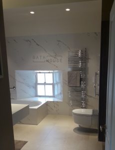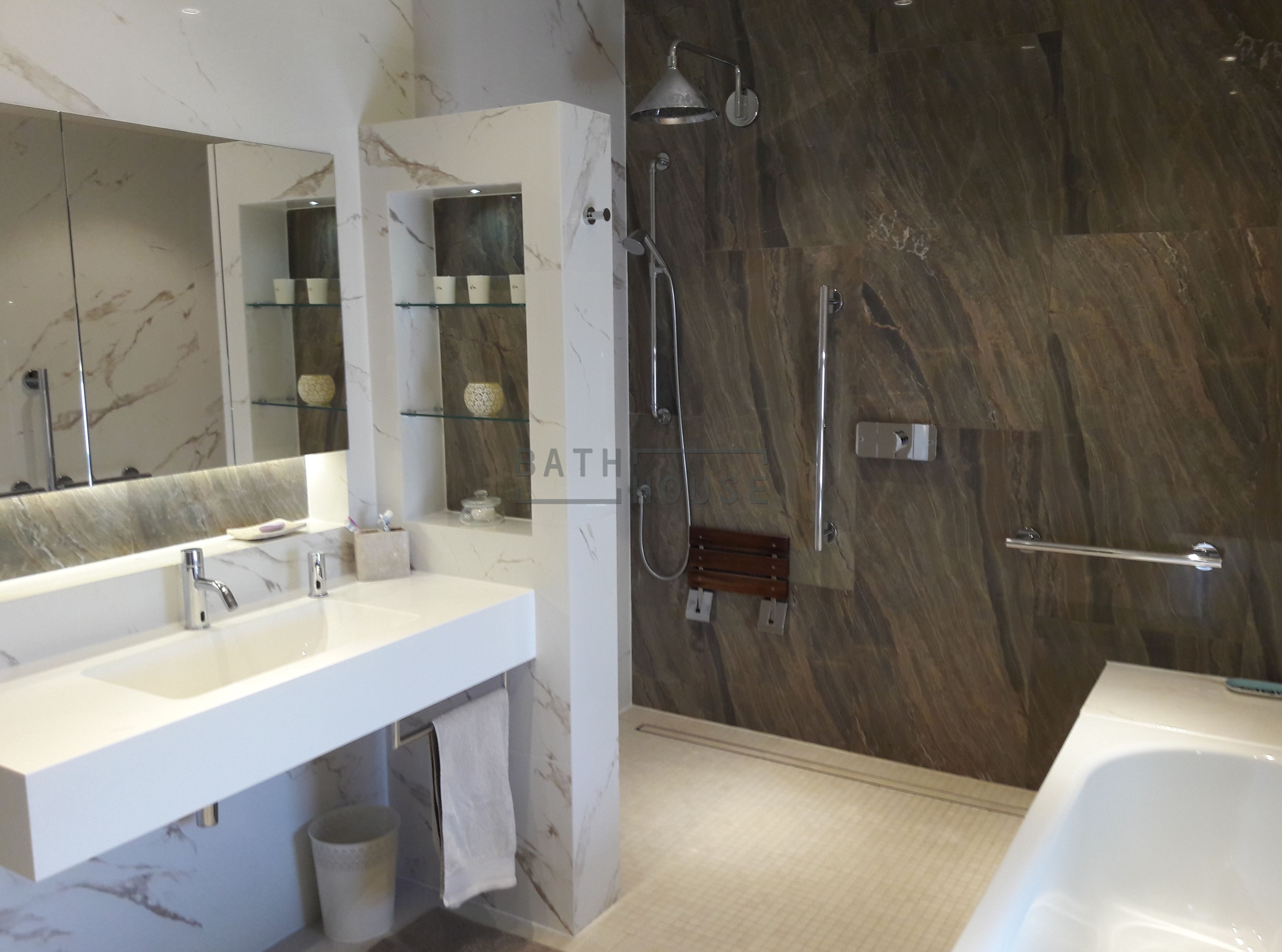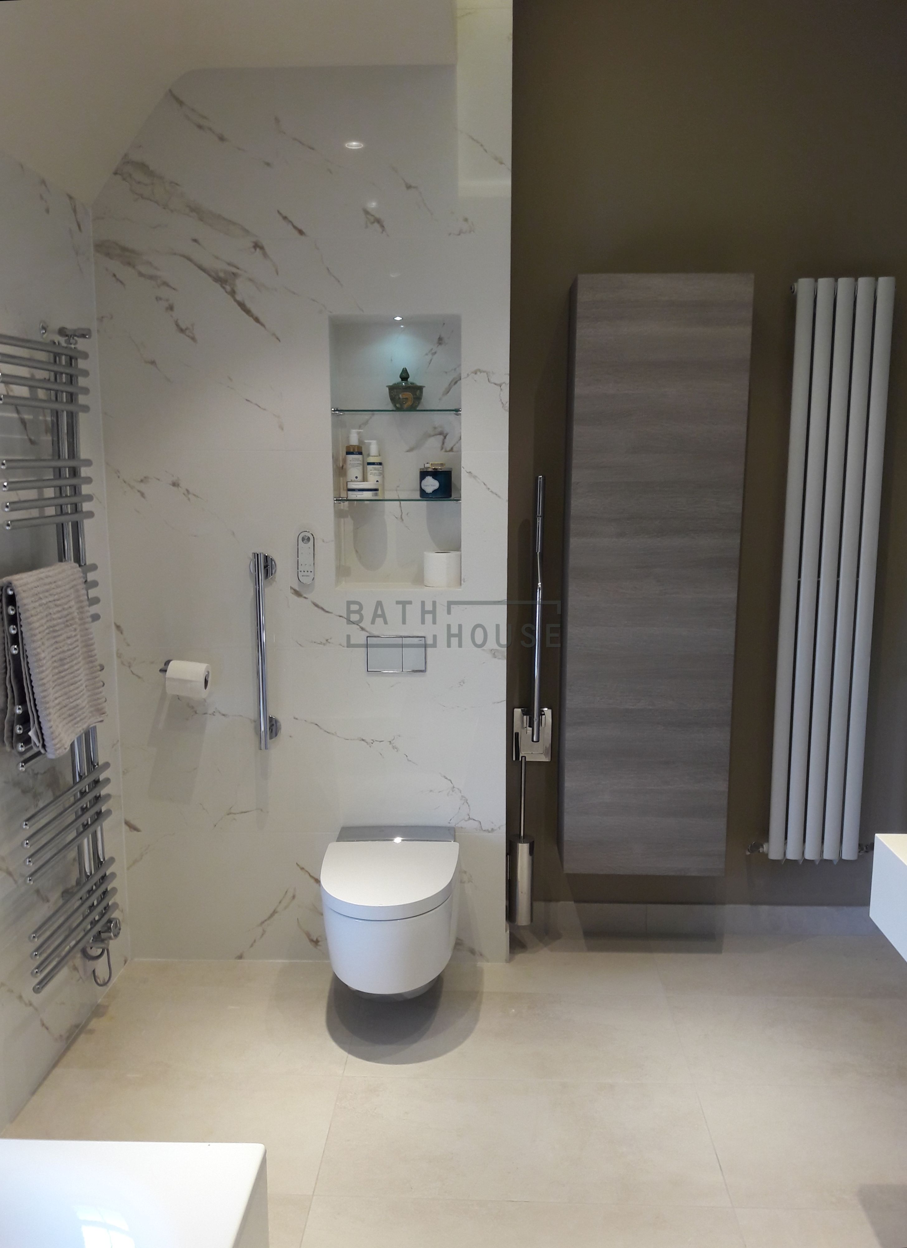 Toilet: Geberit Mera Aquaclean wall hung WC & Geberit Duofix frame & cistern, Generit Omega 60 Flush Plate
