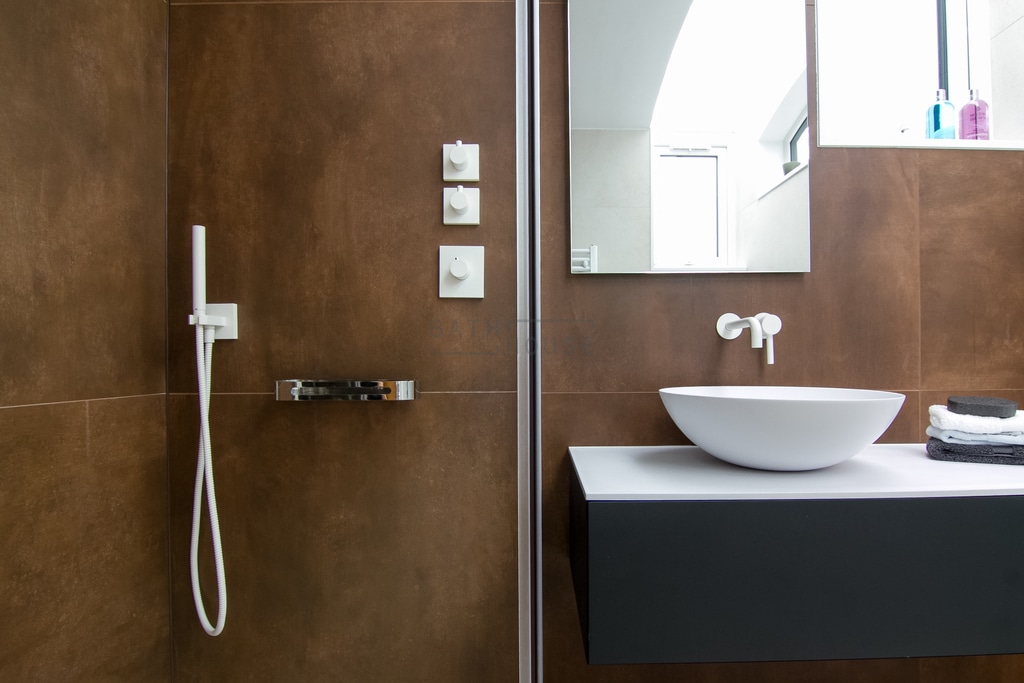 Bathroom with wet room shower designed, supplied & installed by Bath House.