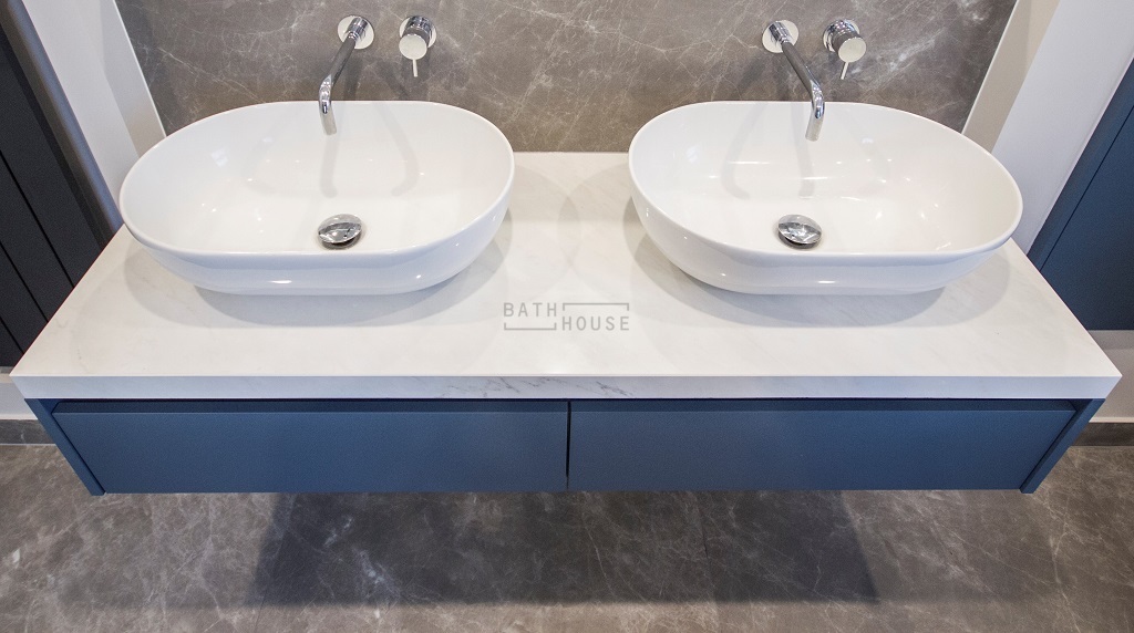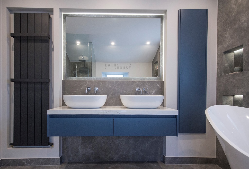 Vanity: Mastella Kami 1 Drawer Unit with Crosswater Avillas Basins & Bespoke Bath House LED Backlit Mirror