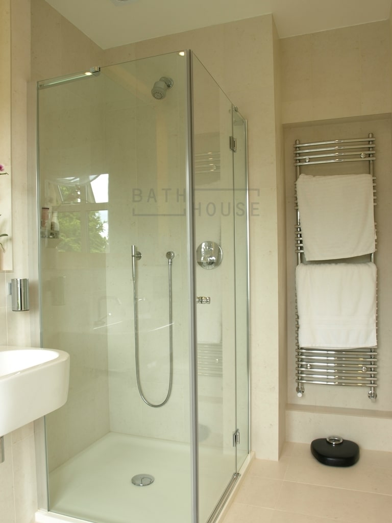 Shower Enclosure: Simpsons Semi-Frameless Side Panel.