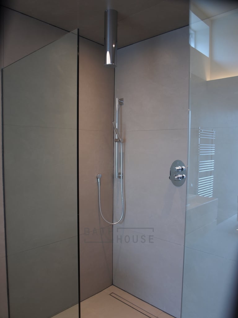 Shower Enclosure: Bespoke Glass Panels by Bath House.