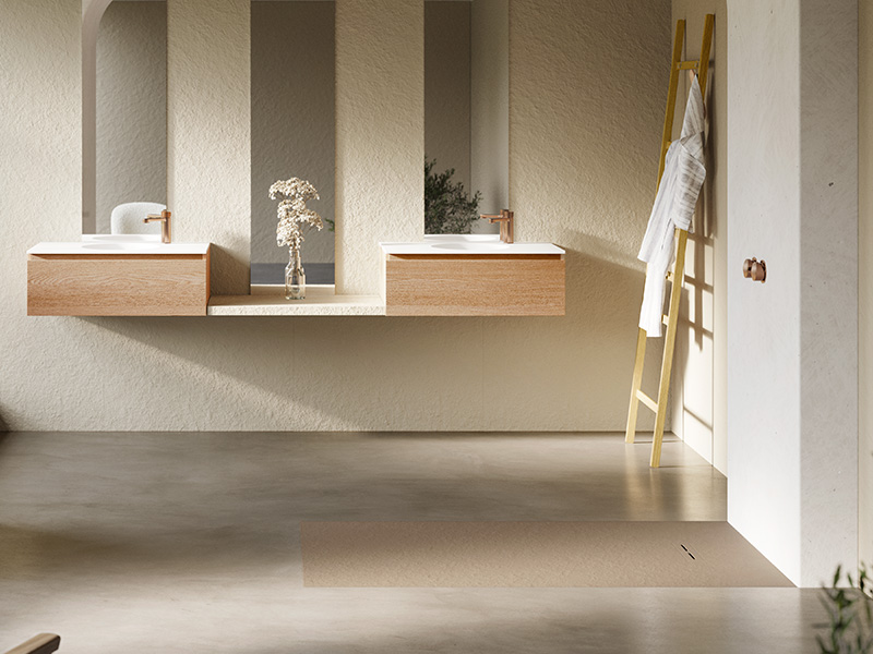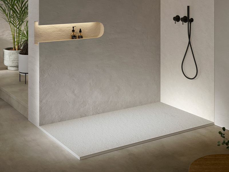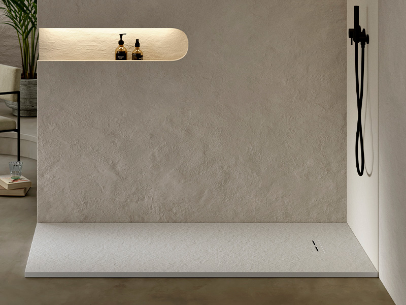 The grid has been designed in Akron, providing a seamless texture and colour continuity with the shower tray’s surface.