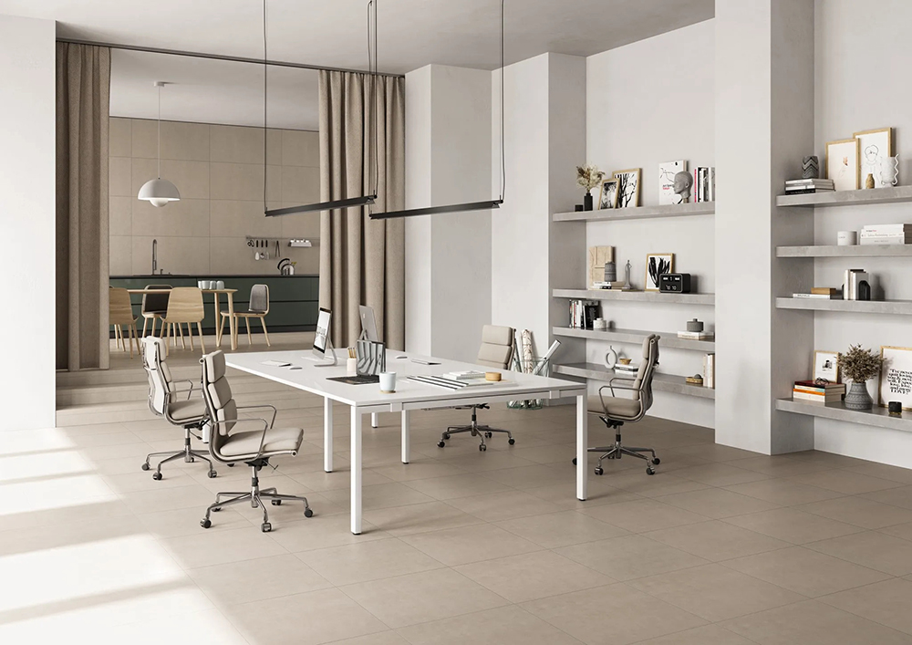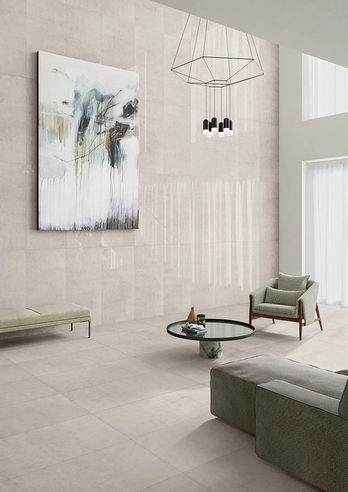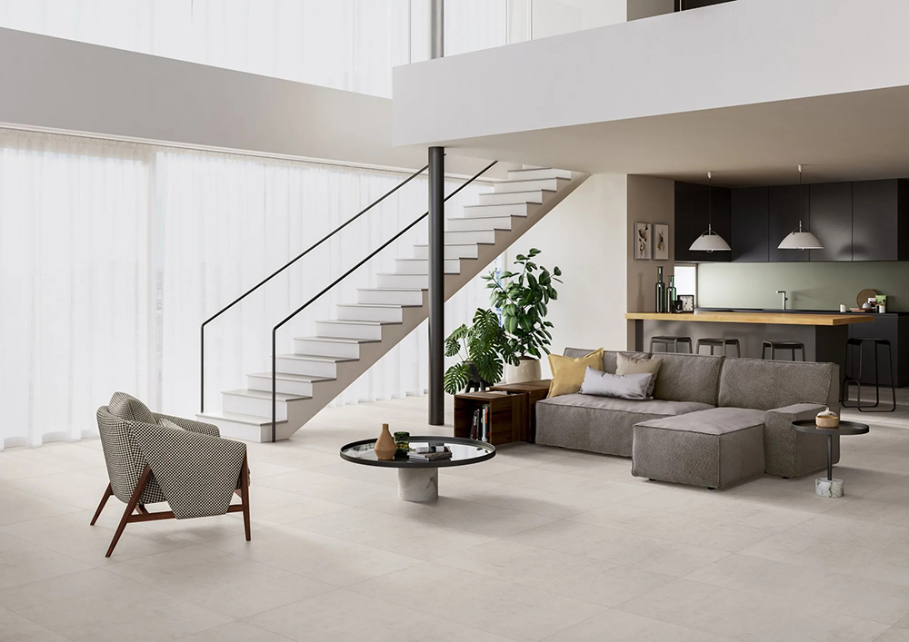 The Timeless collection stands out for its neutral shades, delicate glimmers of light, subtle cloud-like effects, tactile evenness, and concrete’s typical trowel effects.