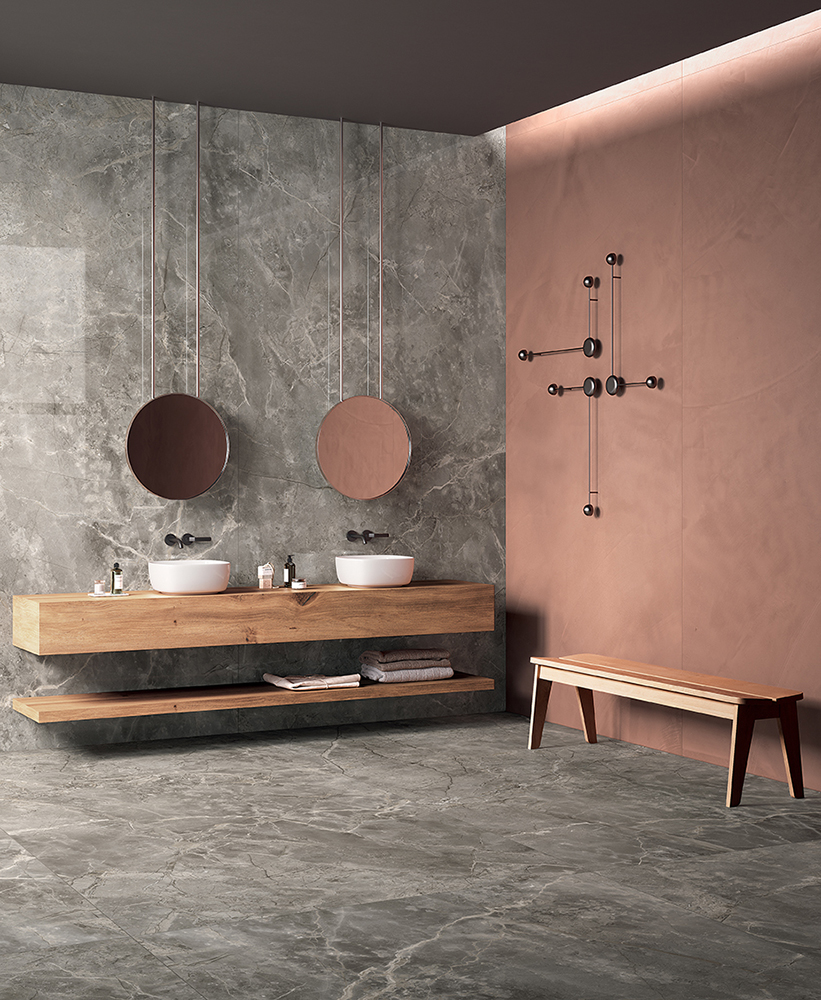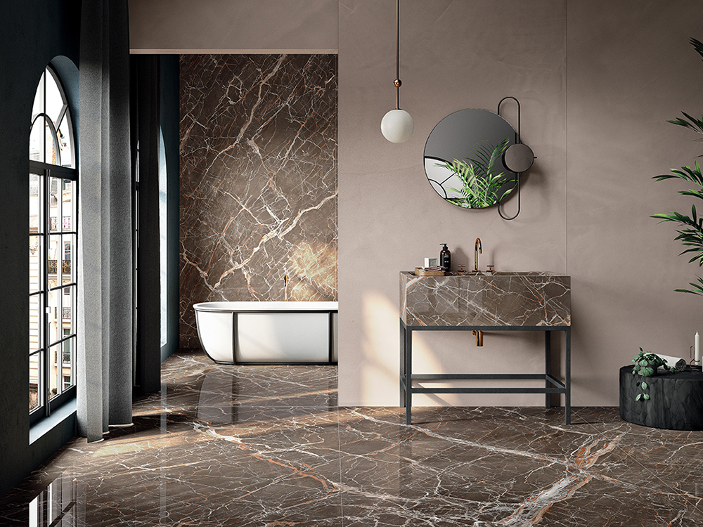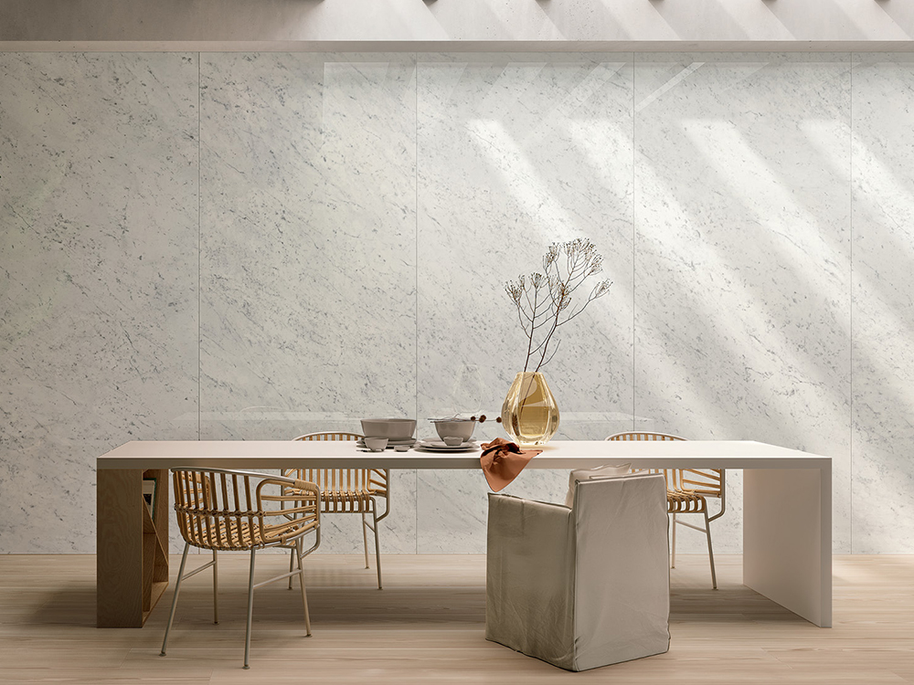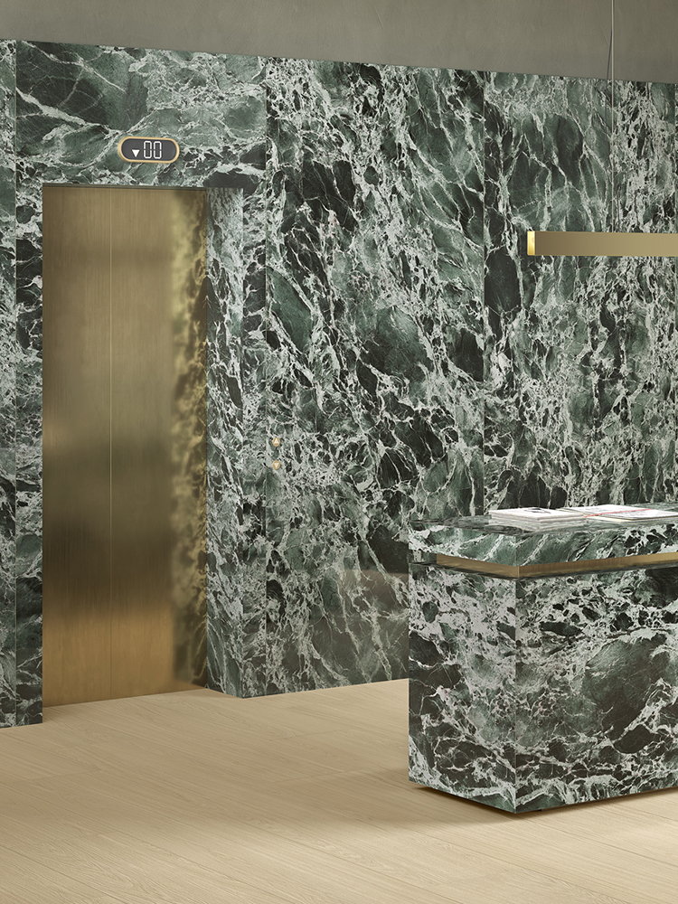 Continuity of tones, balanced veining, glossy and matt finishes, turn “marble” into a versatile product that meets the ever-changing needs of contemporary design. This faithful reproduction of the most prized varieties of marble lends a unique appeal to any setting.