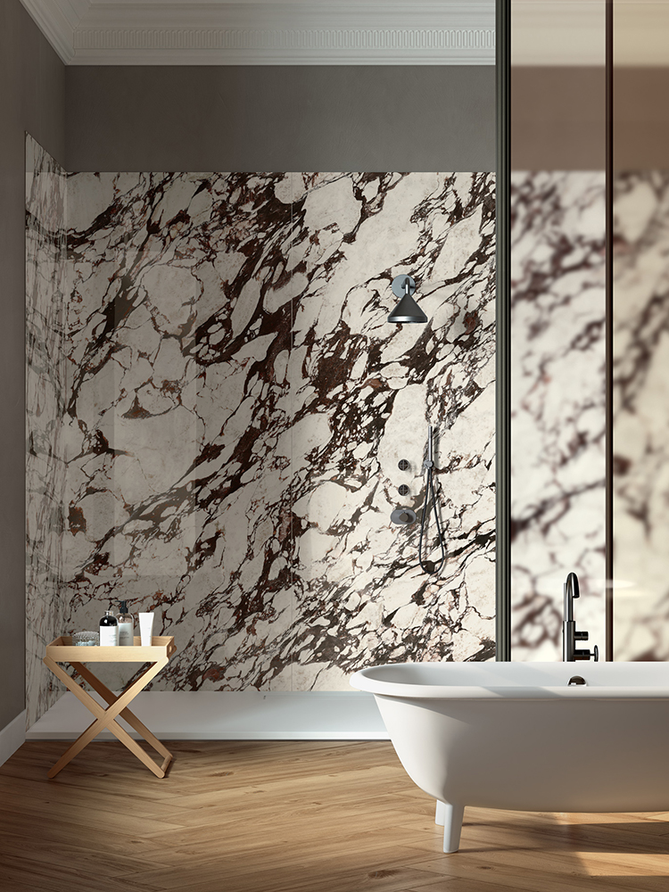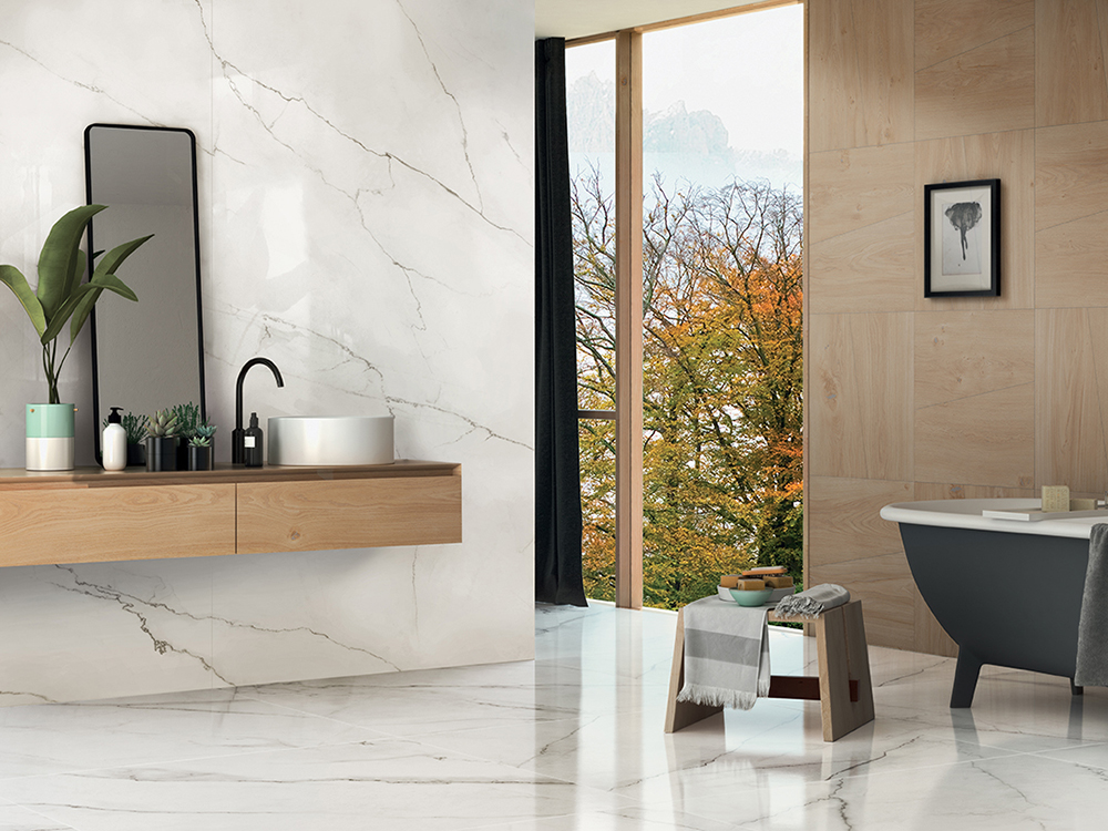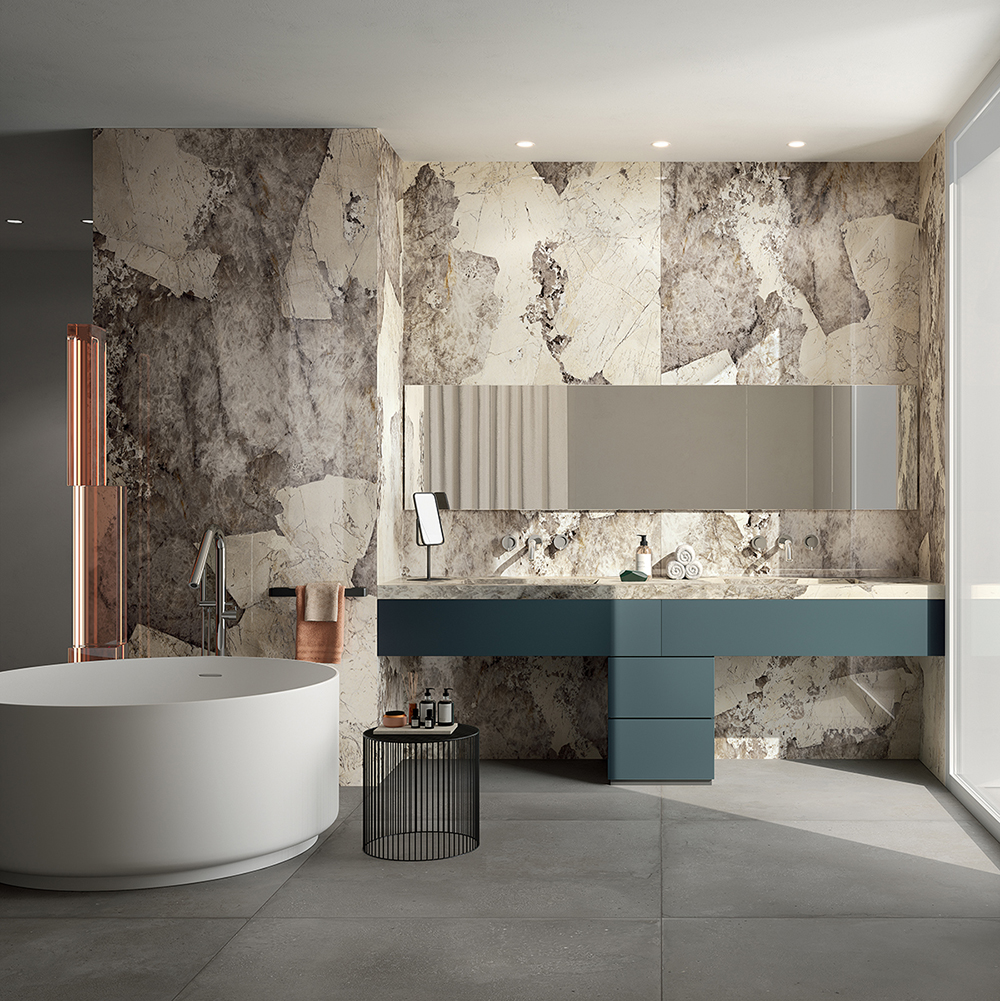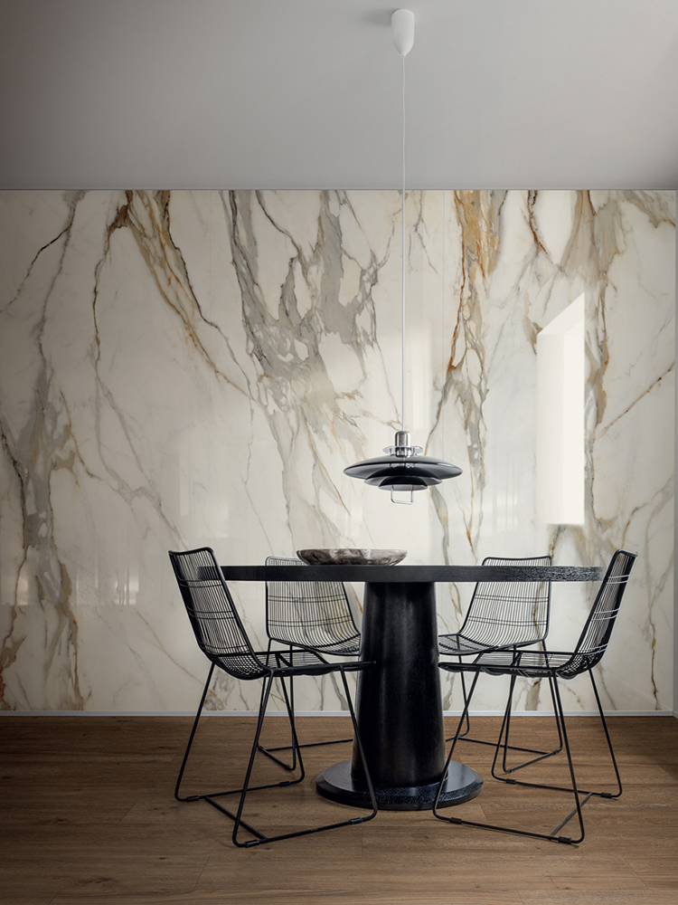 Continuity of tones, balanced veining, glossy and matt finishes, turn “marble” into a versatile product that meets the ever-changing needs of contemporary design. This faithful reproduction of the most prized varieties of marble lends a unique appeal to any setting.