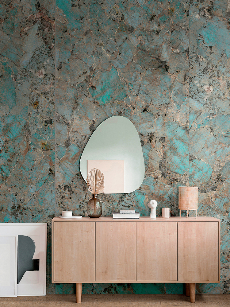 The large 160×320 cm size sets off this stylishly balanced, rich, intense materials and lends itself perfectly to new and creative uses on floors and walls, or as a raw material for innovative home accessories.