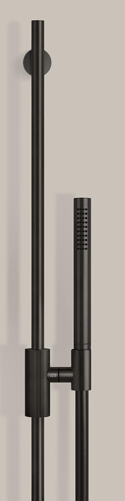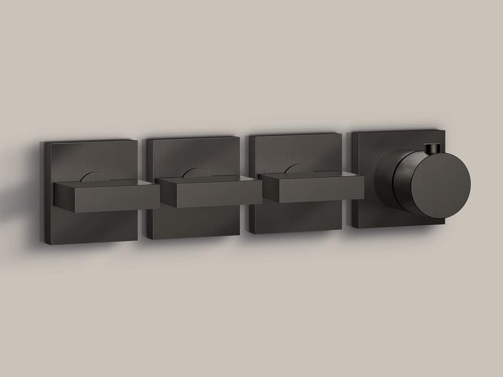 The cylinder of the body combines with the square base on which it stands, the super thin spout and the decorated lever leading to an extreme lightness and cleanliness of form.