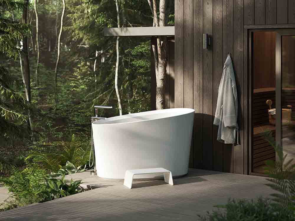 Inspired by Nordic bathing rituals, the Kerid bath is designed for deep immersion rather than traditional bathing, as part of a home spa experience. Kerid can be used as a hot soaking tub for relaxation, or a cold plunge tub to awaken the senses – a therapeutic experience that can be used indoors or outdoors.