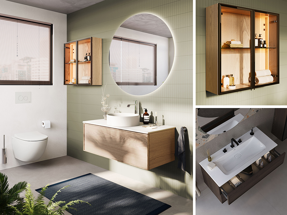 These include washbasin cabinets in various sizes that utilise space efficiently.